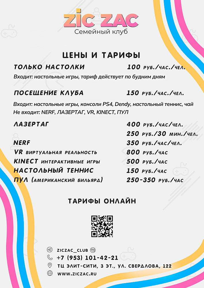 Так же у нас могут действовать специальные тарифы, например, вечерняя игротека. Их мы объявляем в соц. сетях.