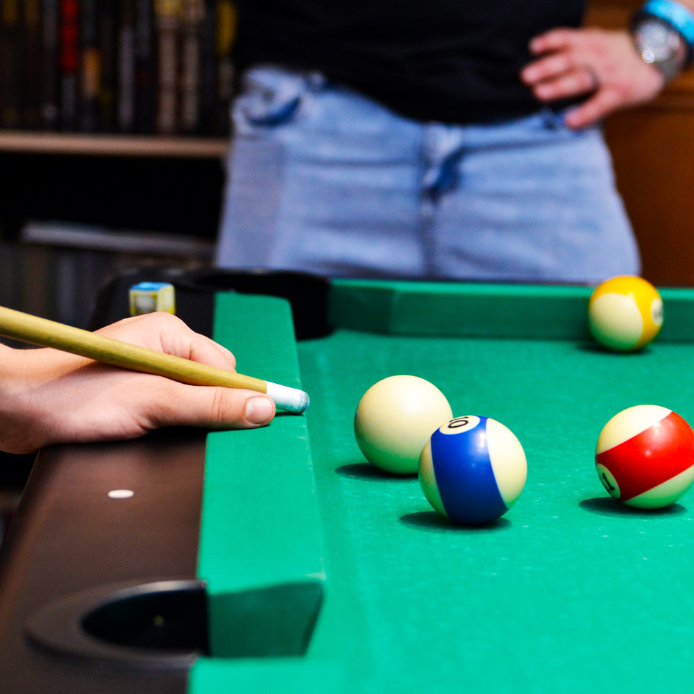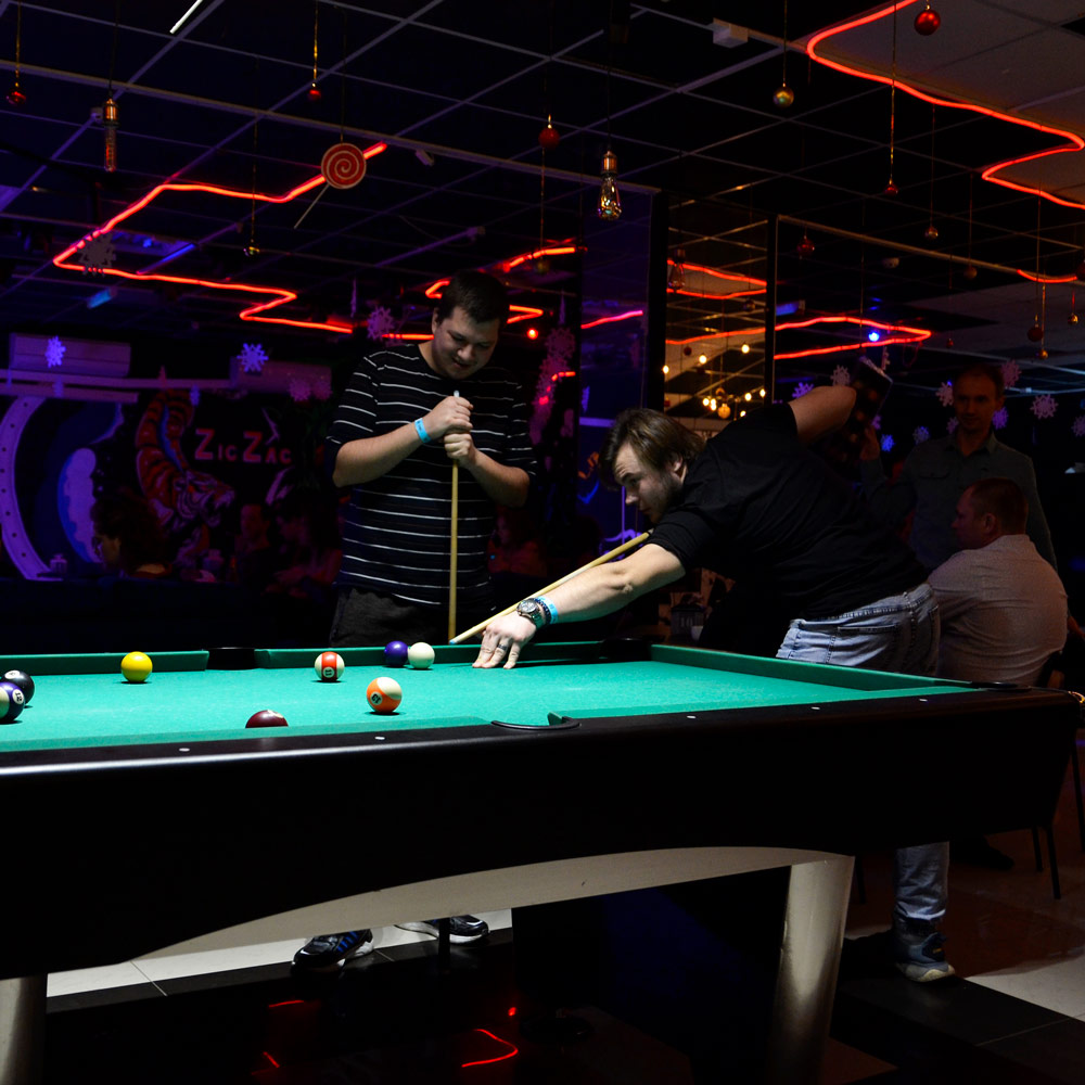 В ZicZac есть отличный стол для игры в пул - американский бильярд. Стол фирмы Dinamic имеет каменную плиту. Пожалуй, лучшее место в Ейске для игры в бильярд! Для удобства игры детей есть укороченный кий.