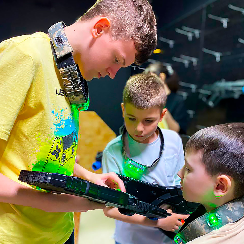 Лазертаг – это командная игра, целью которой является выполнение сюжетных миссий путем поражения противников из бластера (тагера). В игре принимают участие 2 и более команд, вооруженных игровыми комплектами. Существуют сценарии на подобие “Battle Royale” (Королевская битва), в которых каждый сражается сам за себя. Клуб ZicZac предлагает своим гостям самое современное лазертаг оборудование, которое имеет множество режимов, схожих с теми, что используются в компьютерных играх.