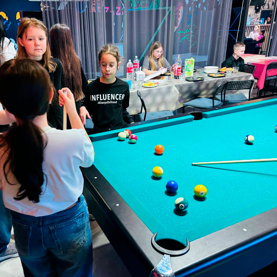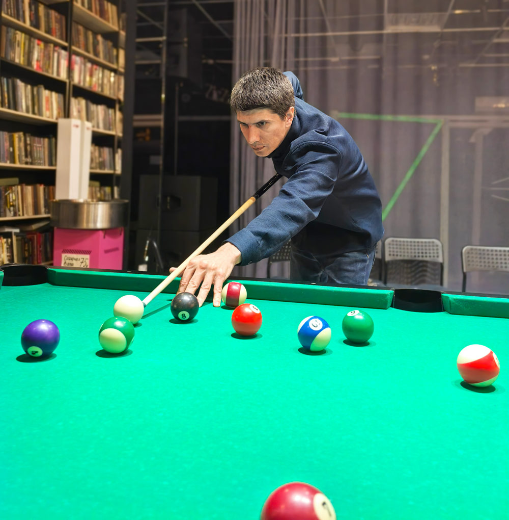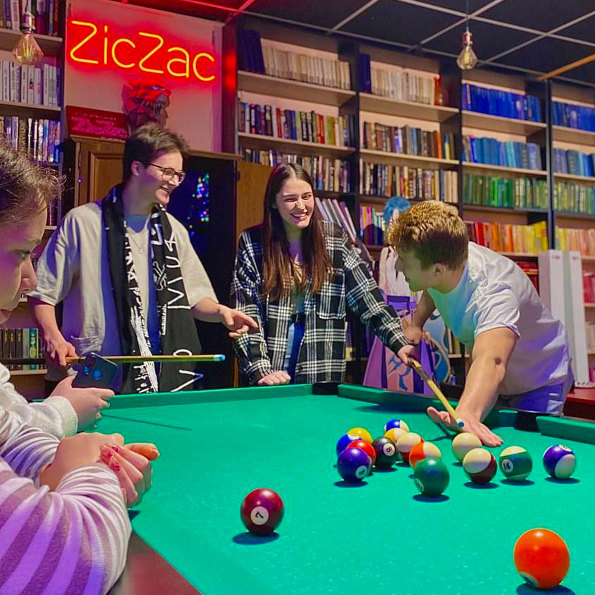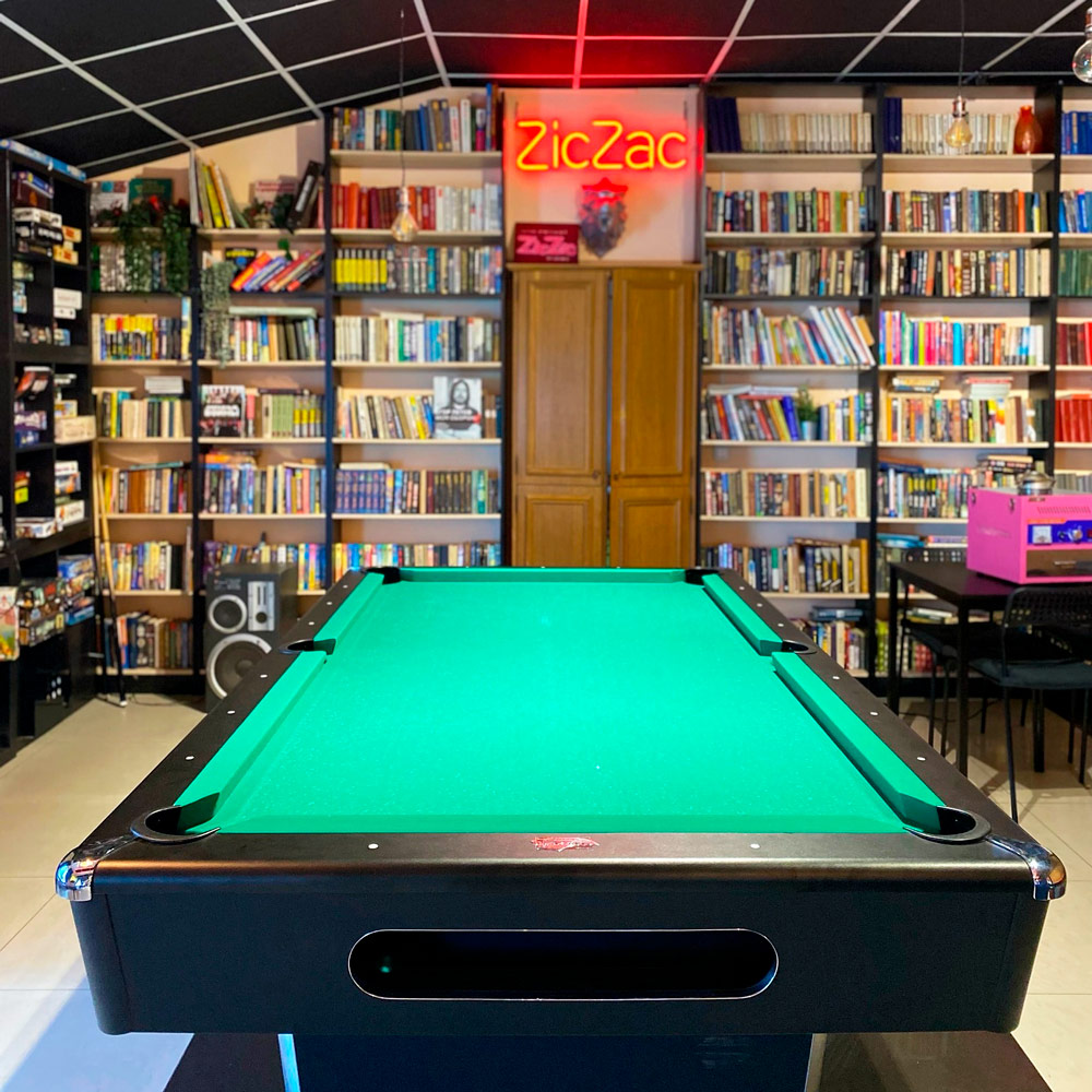 В ZicZac есть отличный стол для игры в пул - американский бильярд. Стол фирмы Dinamic имеет каменную плиту. Пожалуй, лучшее место в Ейске для игры в бильярд! Для удобства игры детей есть укороченный кий.
