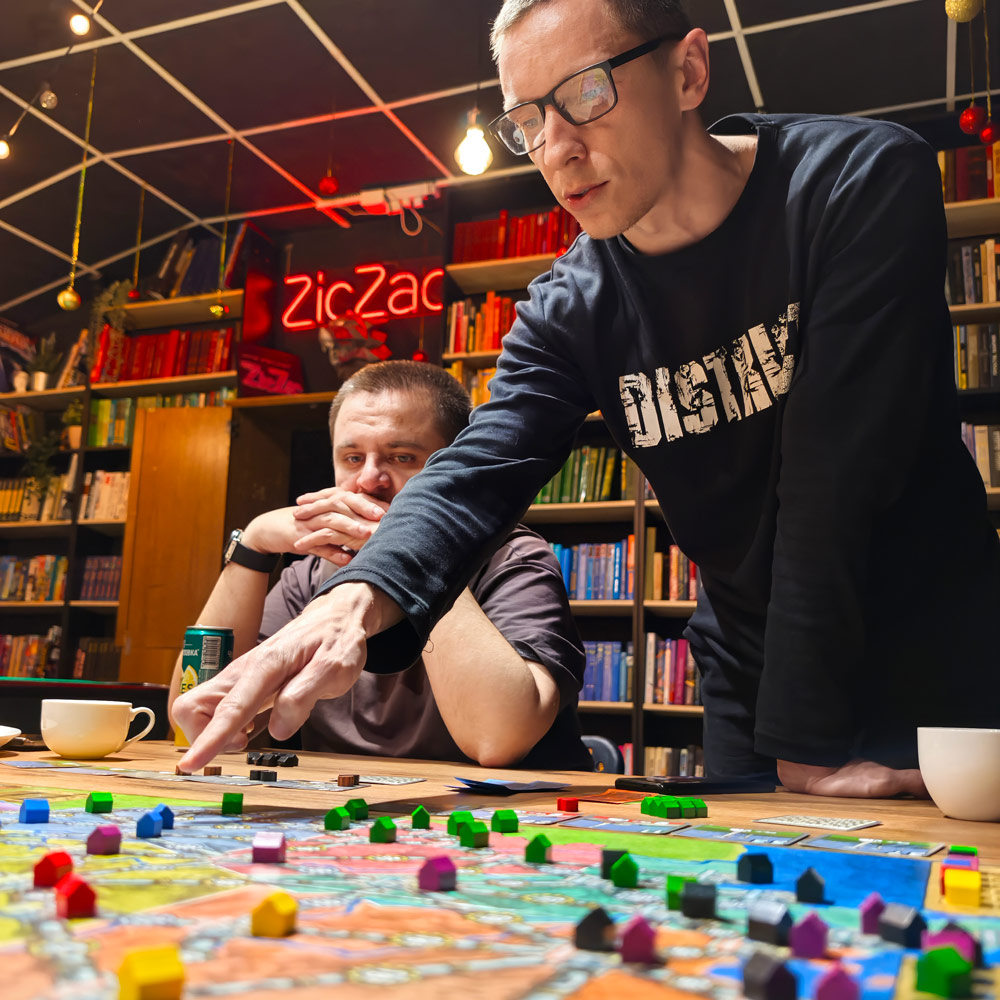 У нас более 140 настольных игр для разных возрастов. Есть такие игры, в которые можно сыграть за 10 минут, но есть и такие, в которые можно играть 5-6 часов. Игры для компаний, игры для одного человека, веселые игры и стратегии.