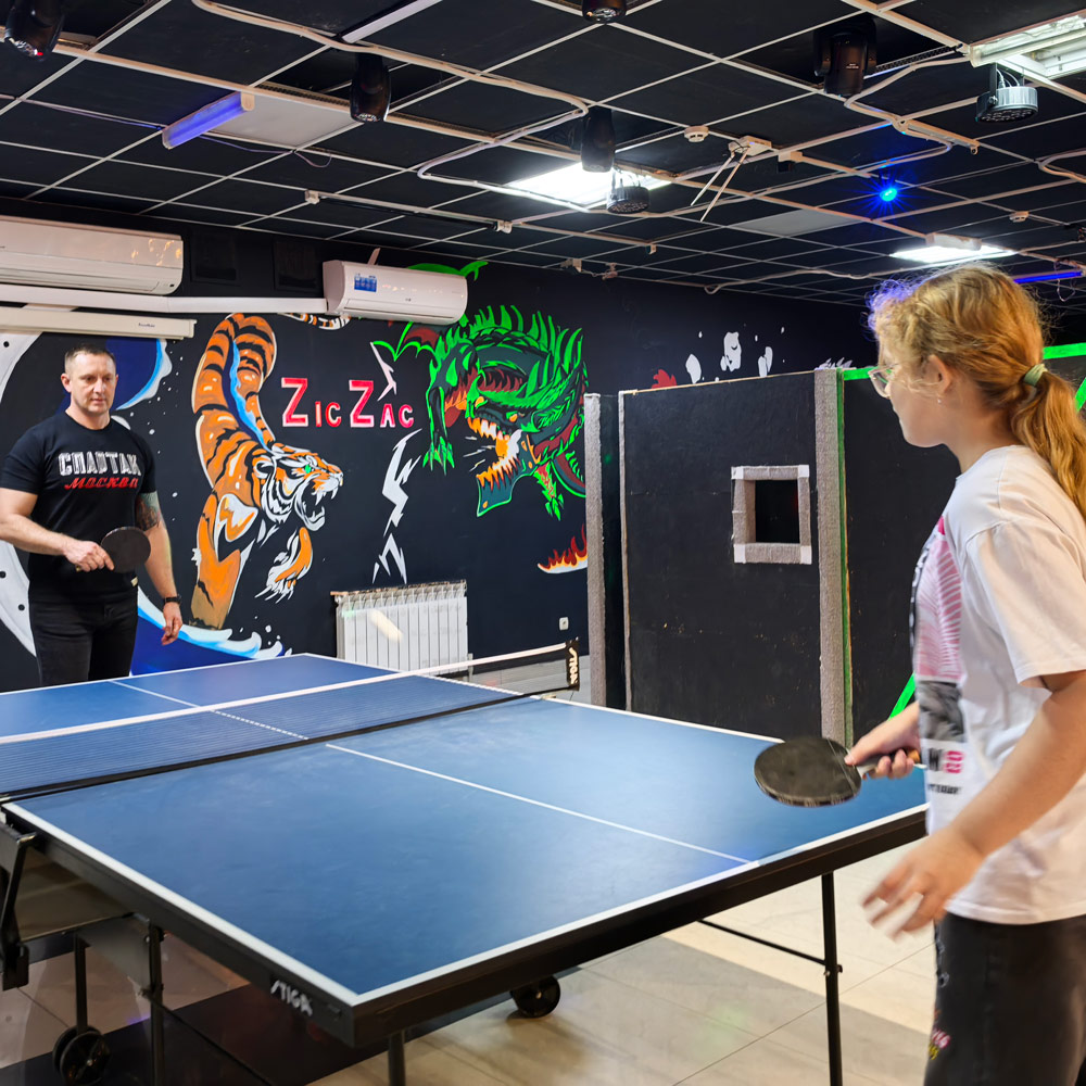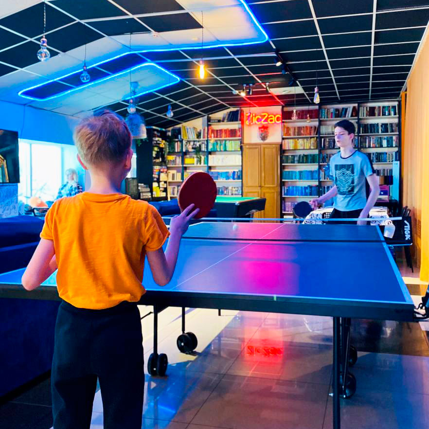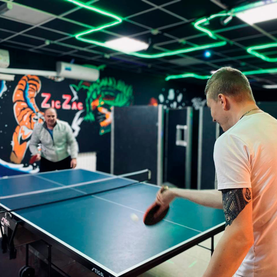 В нашем клубе ЗикЗак есть отличный стол для игры в настольный теннис. Стол фирмы Stiga. Прекрасный отскок, много места, настраиваемое освещение! Пожалуй, лучшее место в Ейске для игры в настольный теннис!